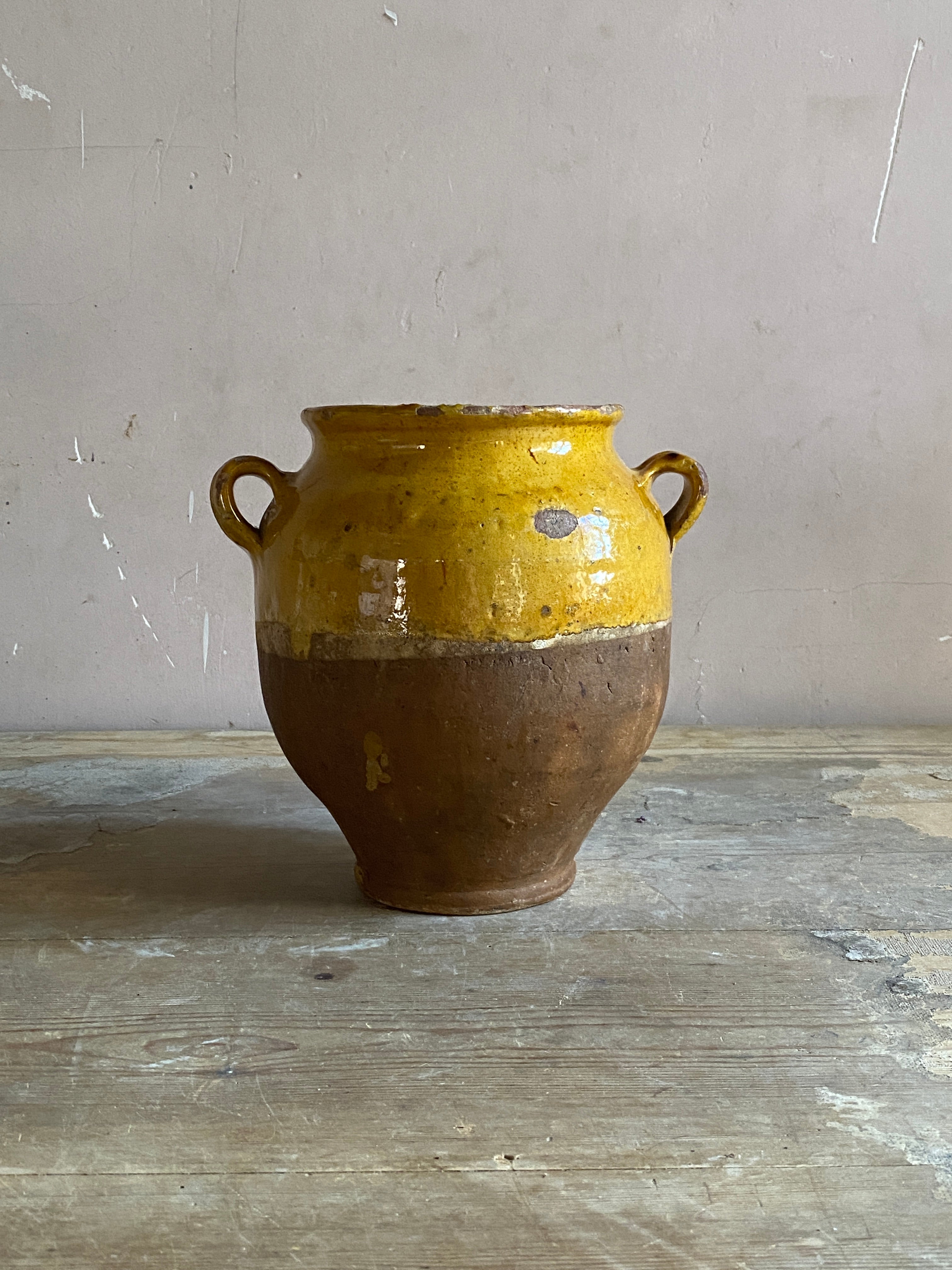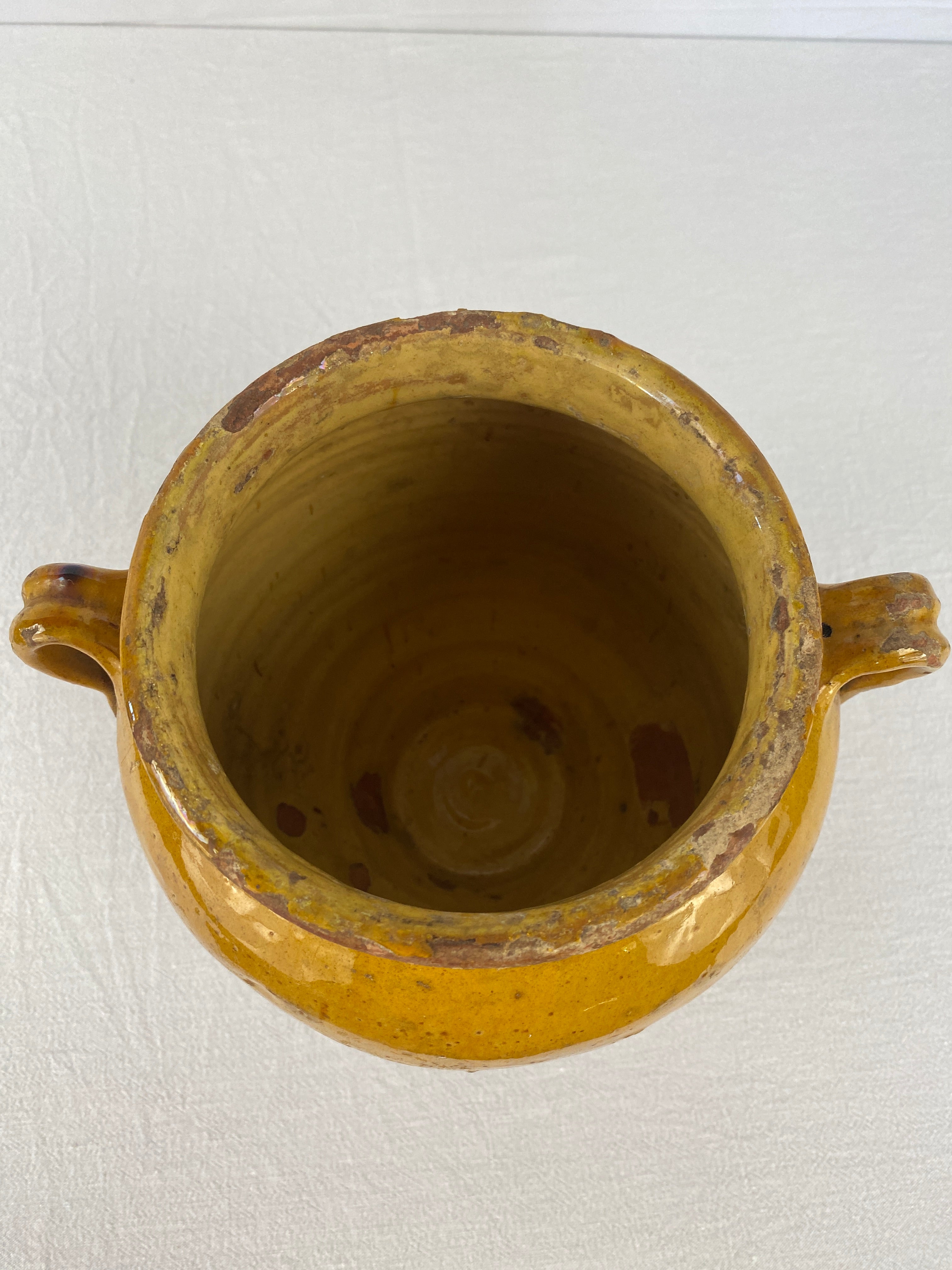 This pot has a stunning bright yellow glaze which is remarkably intact given its age.