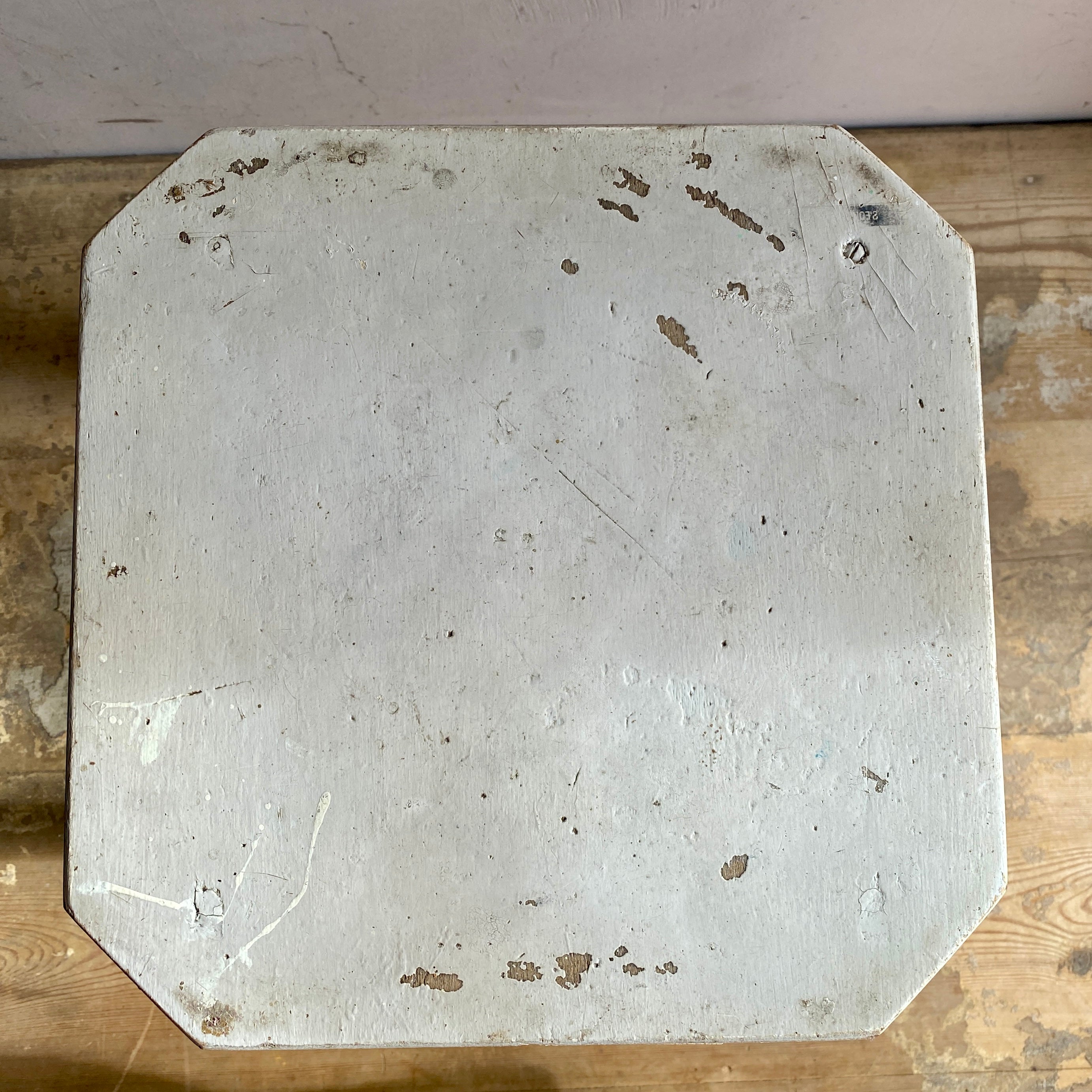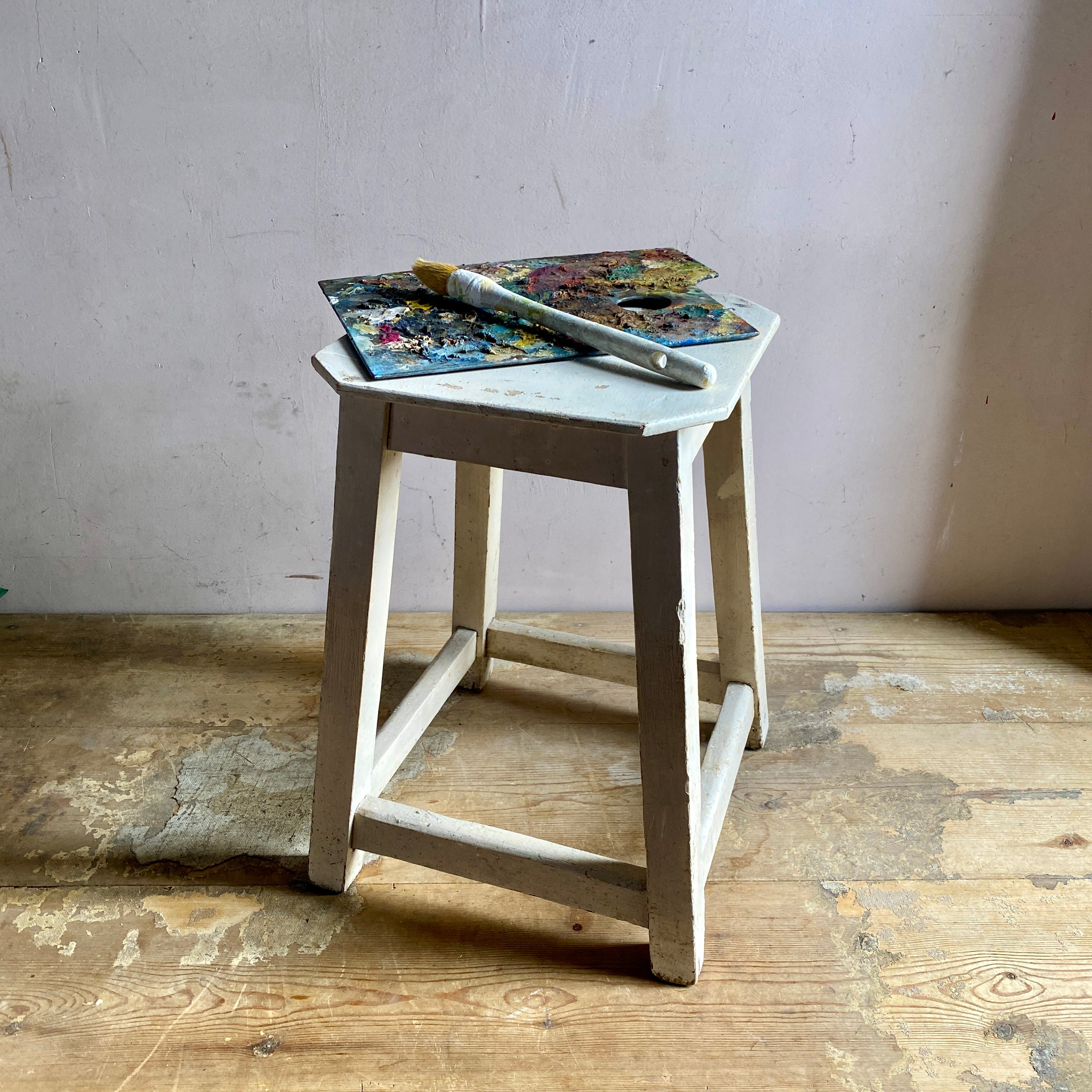 An old French white stool. It has a great patina from years of wear that simply cannot be replicated.