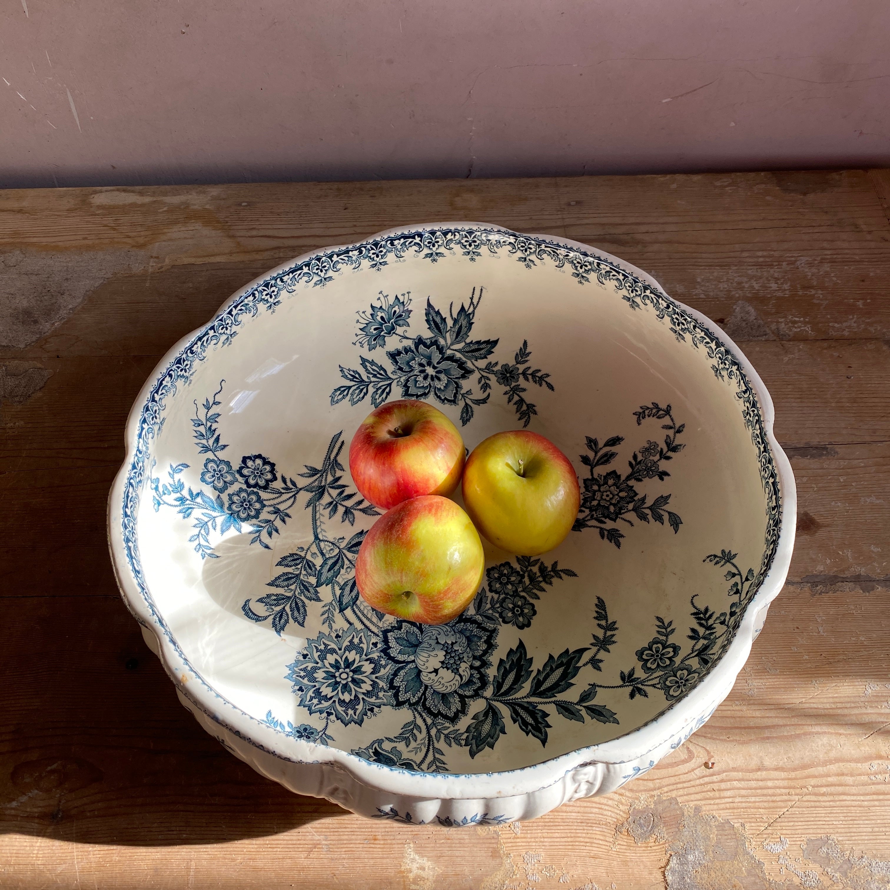 This elegant blue floral-patterned bowl is very large and would make an ideal serving bowl or fruit bowl.