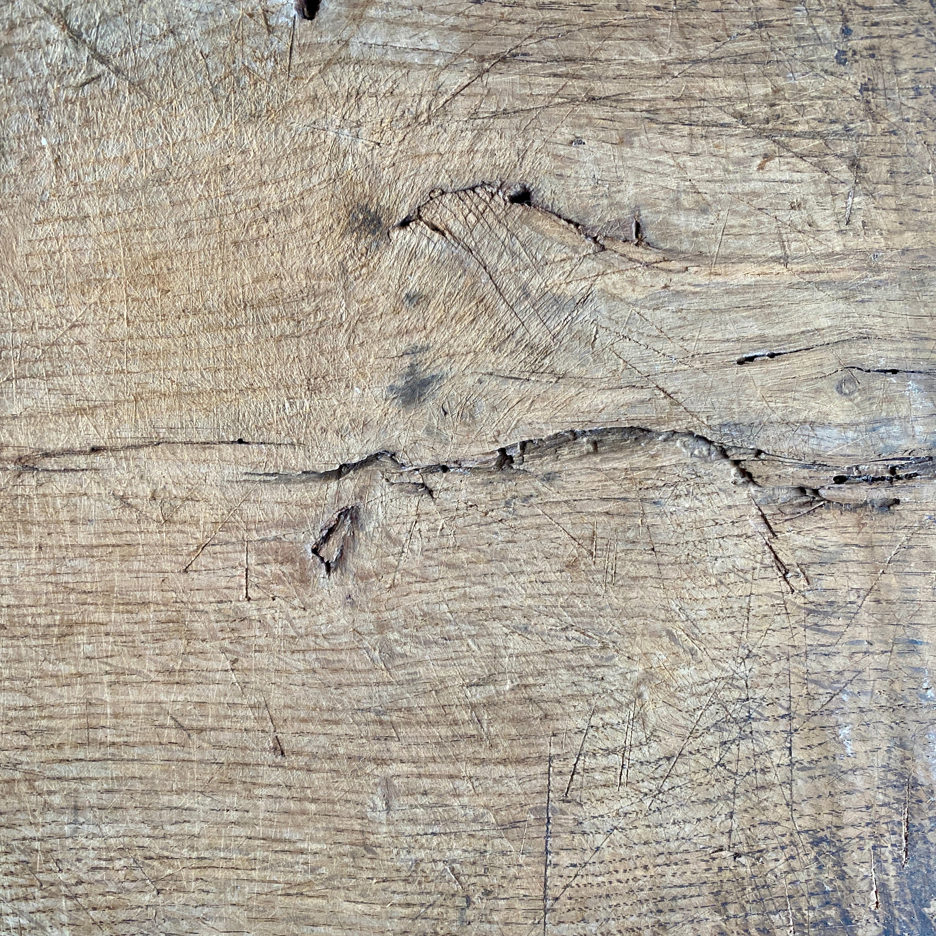 This is a very old and well used item with many decades of use. As such, it has age-related marks, scratches and scrapes which enhance its rustic appeal.